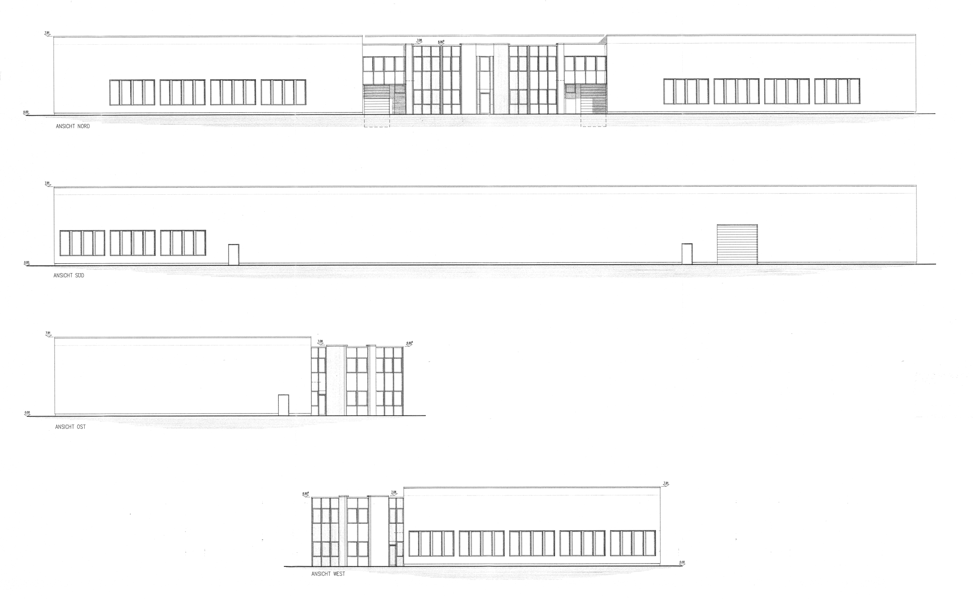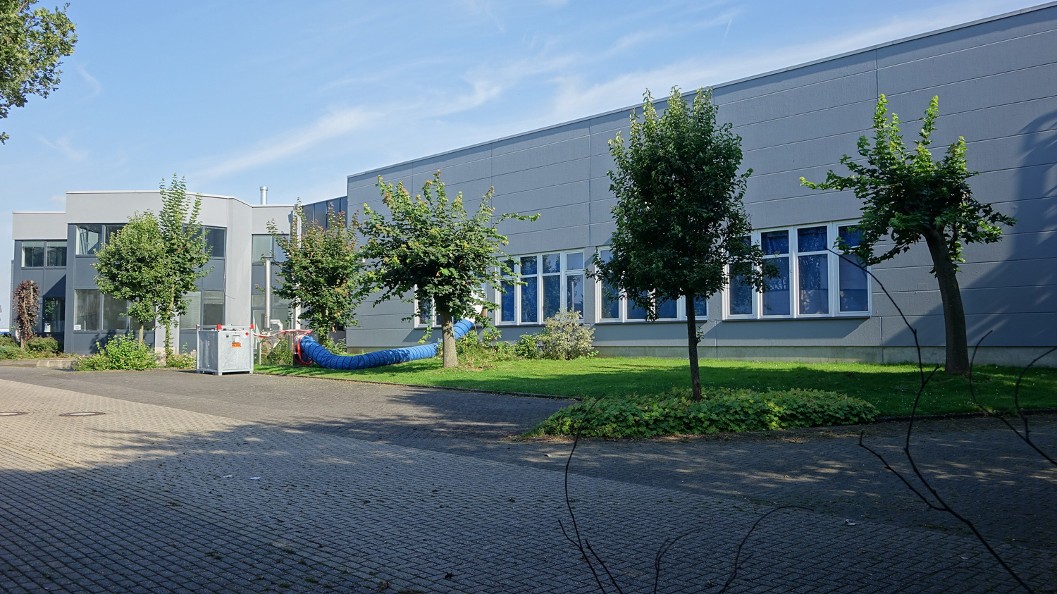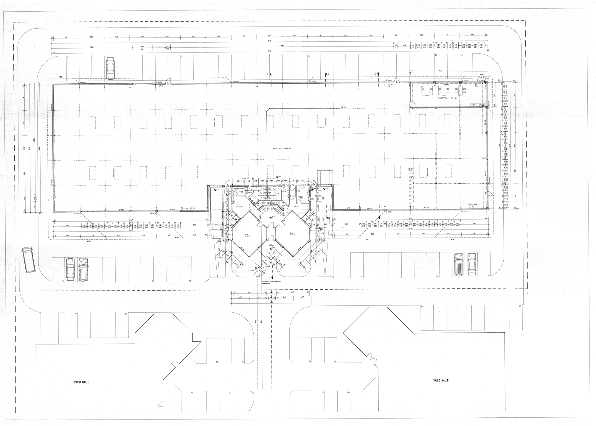 Die Trennwände zum Bürogebäude sind als Brandwände ausgeführt. Halle und Verwaltung sind mit einer Verbindungstür verbunden; die Halle ist zudem über separate Außentüren begehbar.